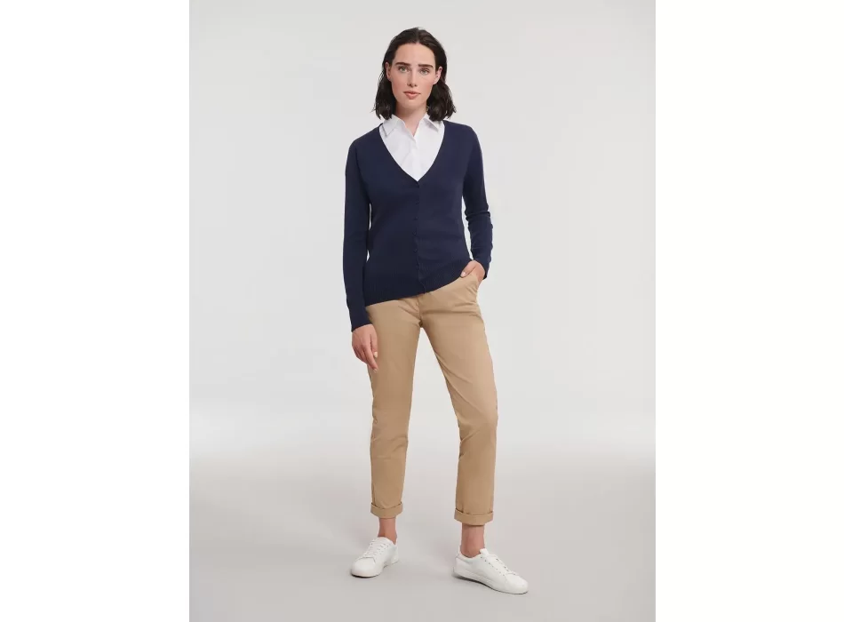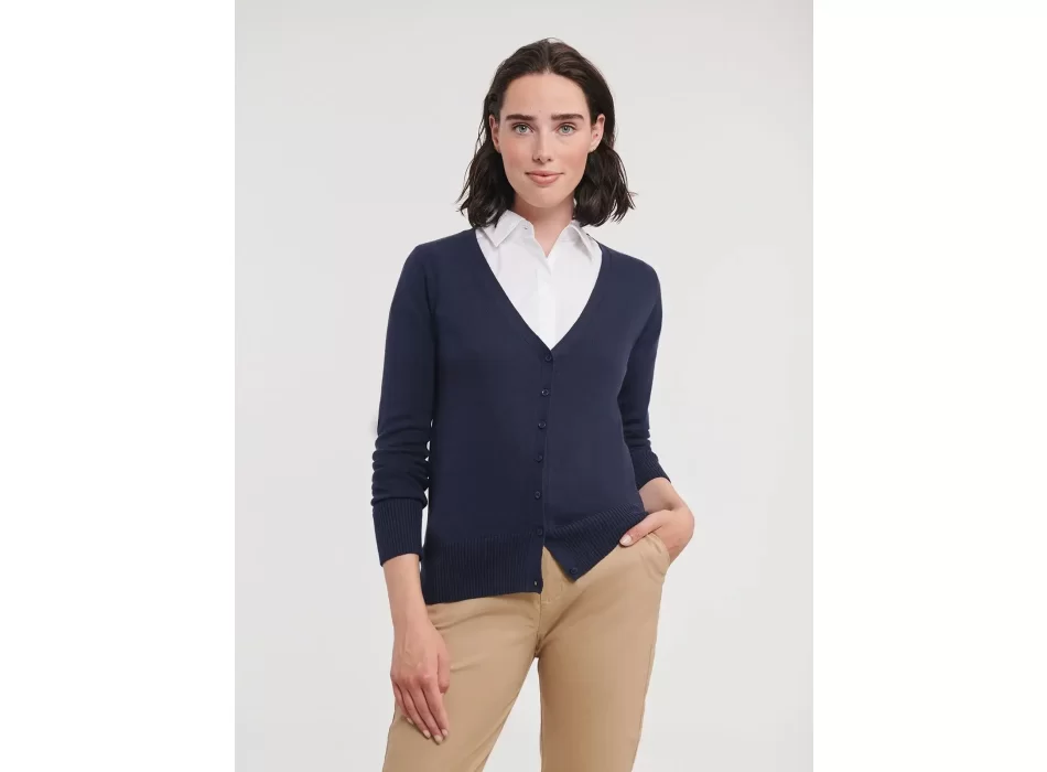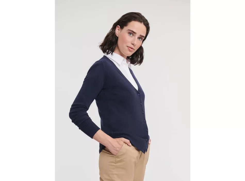 Cardigan donna in cotone e acrilico personalizzabile con il logo della tua azienda. Un'idea originale per promuovere il tuo brand in modo elegante e confortevole.
