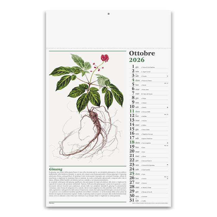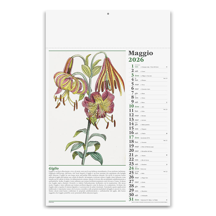 | Dimensioni | calendario: cm 29x47 ca testata: cm 29x9 ca |