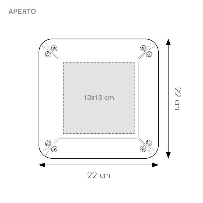 | Dimensioni | cm 22x22 ca (aperto) cm 19x19 ca (chiuso) |